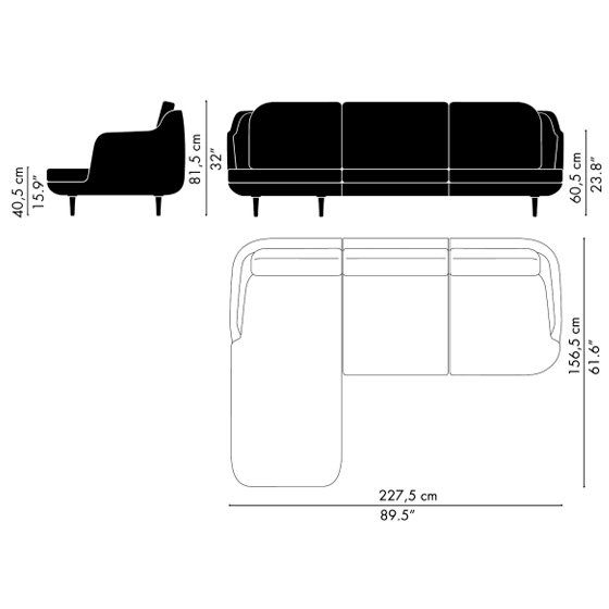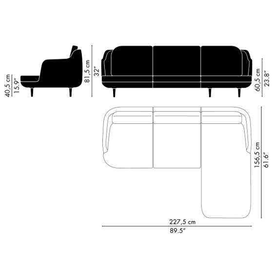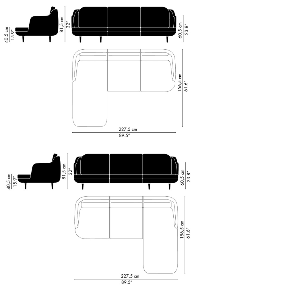 Un módulo chaise longue en el sofá de tres plazas amplía el perfil suave y relajado de Lune y crea una experiencia de descanso mejorada. Esta extensión de chaise longue tiene dos opciones, su lado izquierdo y derecho.