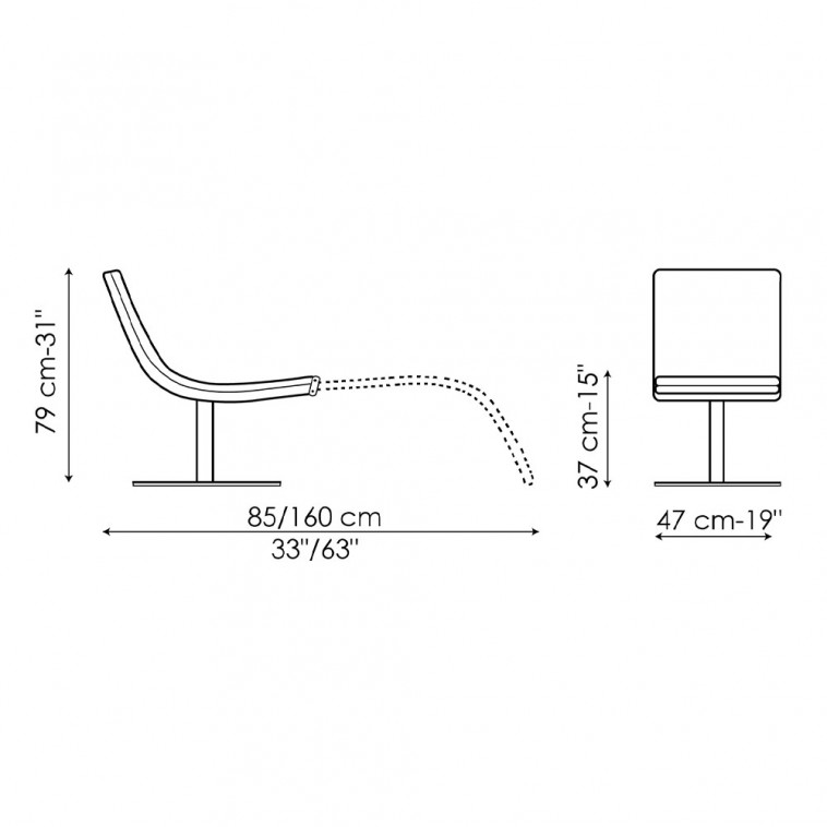 Butaca giratoria acolchada con forma de línea sinuosa en base de acero.