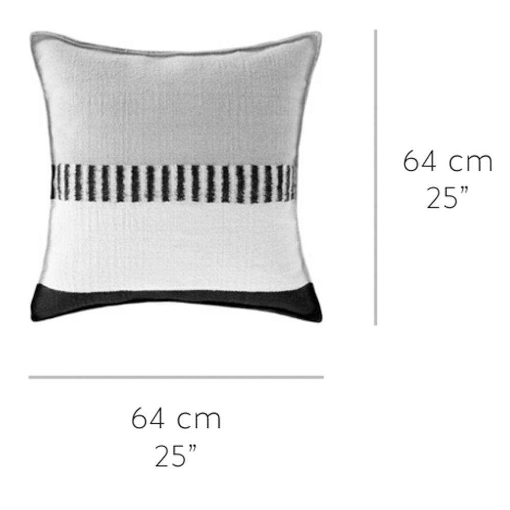 El cojín Rustic Chich de GAN está fabricado a mano con yute. Su diseñadora Sandra Figuerola crea un patrón moderno con una paleta de colores atrevidos.