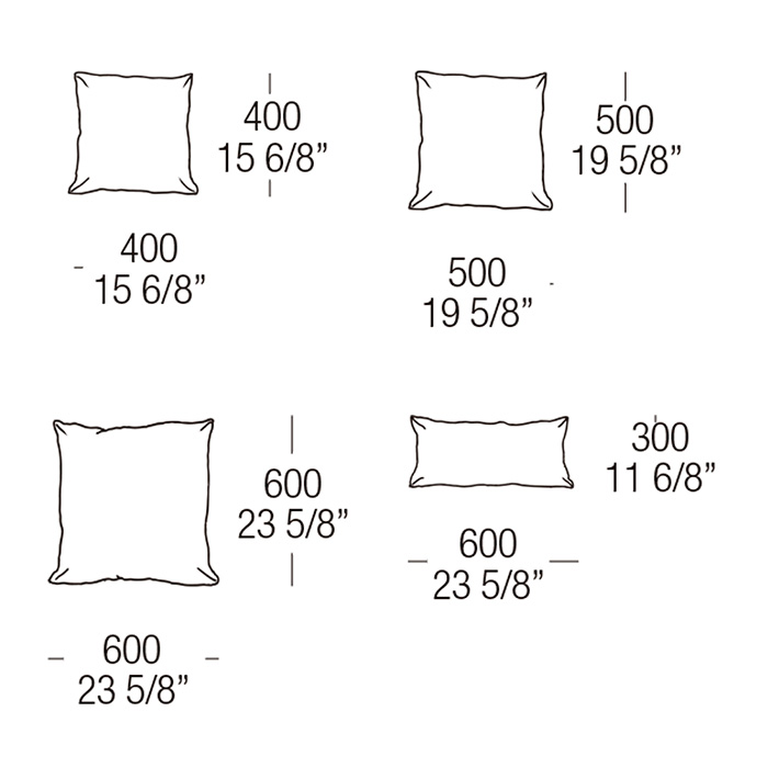 Una colección de cojines rellenos de espuma o pluma, disponibles en una amplia variedad de tamaños.