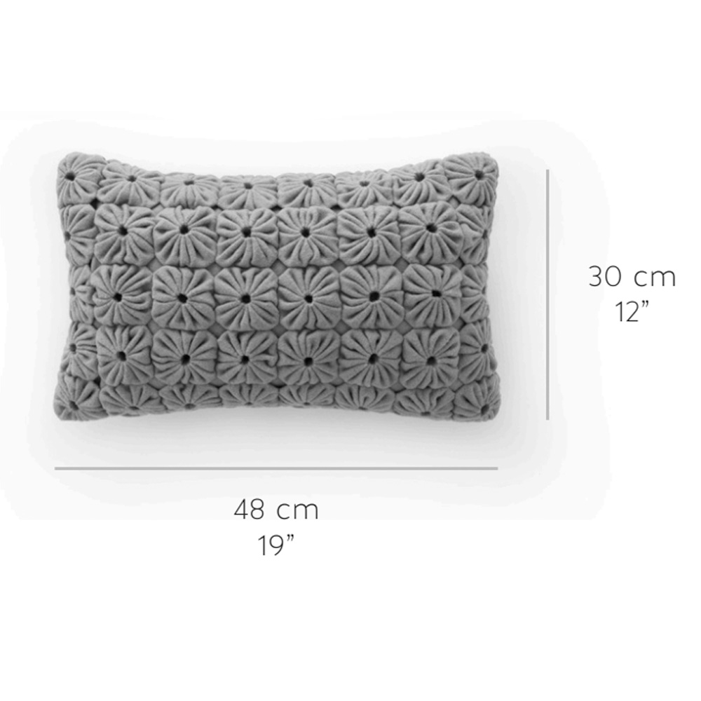 Cojín Momos de GAN es parte de una colección que combina tradición artesanal y diseño contemporáneo. Su origen está en un tejido local del estado de Maranhão, en el norte de Brasil, cuya estética recuerda a los huevos de mariposa. Inspirado por esta artesanía, José A. Gandía-Blasco Canales lo reinterpretó para crear una superficie tridimensional con estructura fractal, característica de la colección.