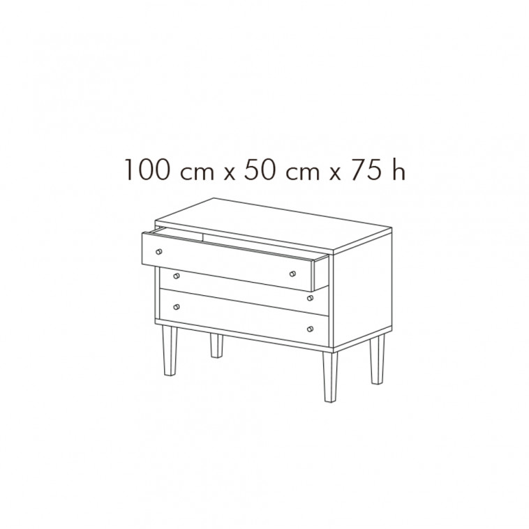 Cómoda con 3 cajones de madera natural impresa y laminada. Dimensiones: 100x50x75h cm.