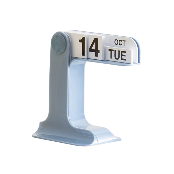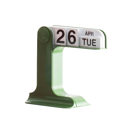 Sus tarjetas de PVC, dedicadas a días, meses y fechas, se despliegan desde un pivote central para crear la combinación deseada de forma rápida e intuitiva.