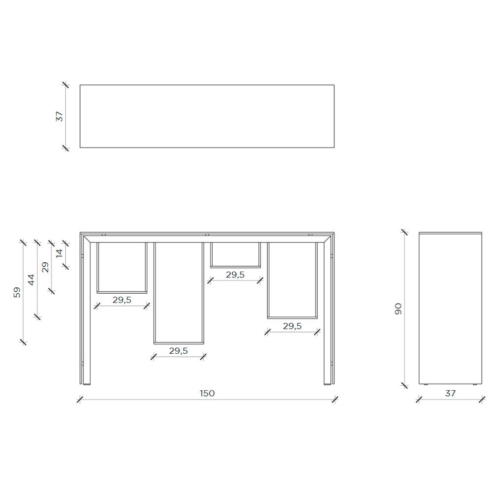 Dimensiones: 150x37x90h cm.