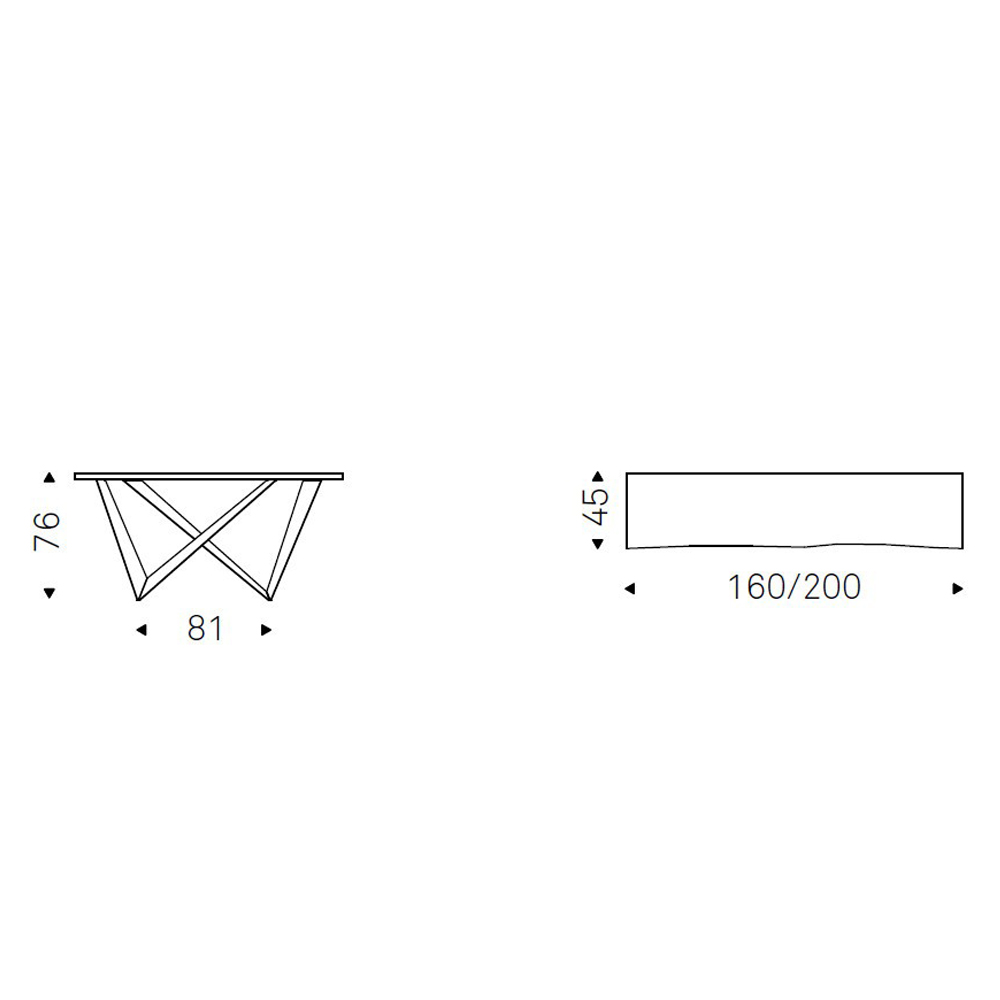 La base está realizada en acero barnizado gofrado o acabado Brushed, mientras que el sobre es de madera. Esta combinación de materiales aporta estabilidad y permite que el mueble mantenga una presencia equilibrada en el espacio. El diseño de la base se convierte en el elemento central de la pieza, acompañando la superficie superior de forma ligera.