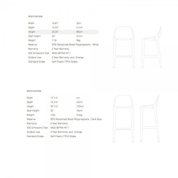Taburete en 2 alturas. Todos los colores se pueden usar en exterior a excepción del naranja.