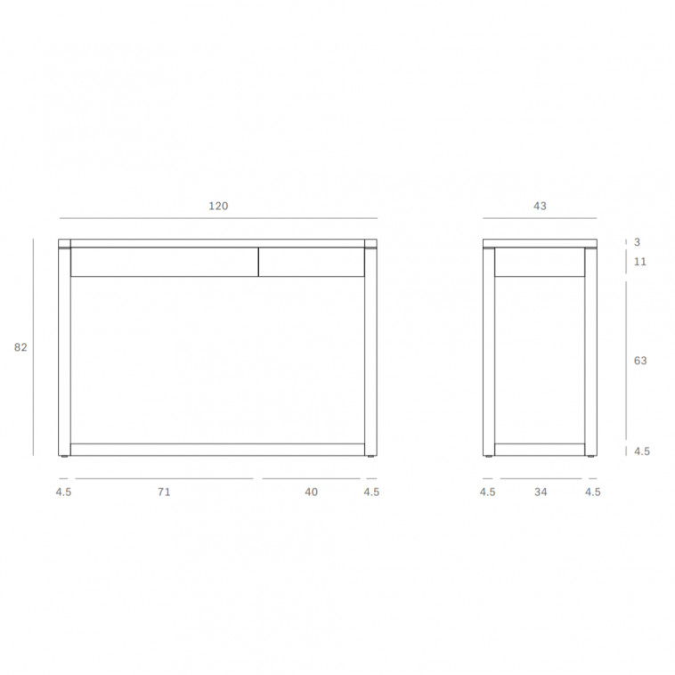 Escritorio con 2 cajones de madera de roble. Dimensiones: 120x43x82h cm.