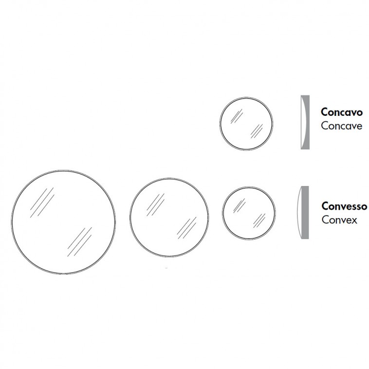Los espejos cóncavos y convexos crean sorprendentes efectos y composiciones, proyectando el espacio a una nueva dimensión. La estructura está hecha en metal lacado moka o metal latón bruñido. Disponible en tres diametros diferentes.