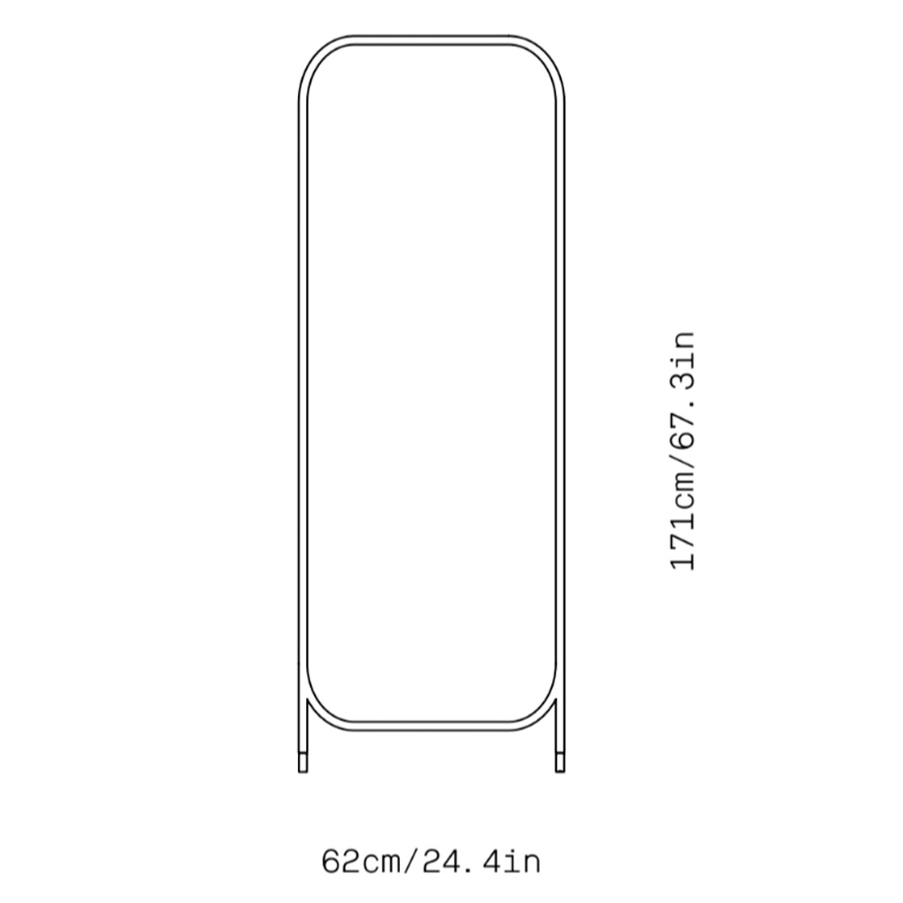 Espejo de suelo vertical en acero con patas de corcho. Dimensiones: 62x171h cm.