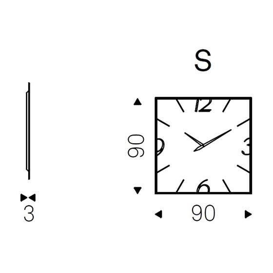 Espejo reloj en cristal serigrafiado con agujas en aluminio.