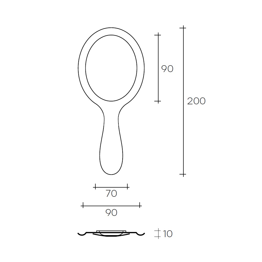 El espejo Lollipop de Fiam, llamado así por su forma y diseño similar al de un famoso dulce. Este puede utilizarse tanto de pie como en pared, cuenta con un marco de vidrio fundido de 8 mm retroplateado y un espejo plano de 5 mm.