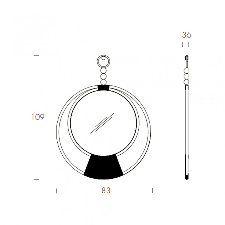 Un delicado entrelazar de tejido, expertamente trabajado a mano, apoya un espejo bronce o grey. Una estructura en metal cromado, un círculo de protección para el espejo, crea una imagen ligera, que se termina con tres detalles en madera maciza.