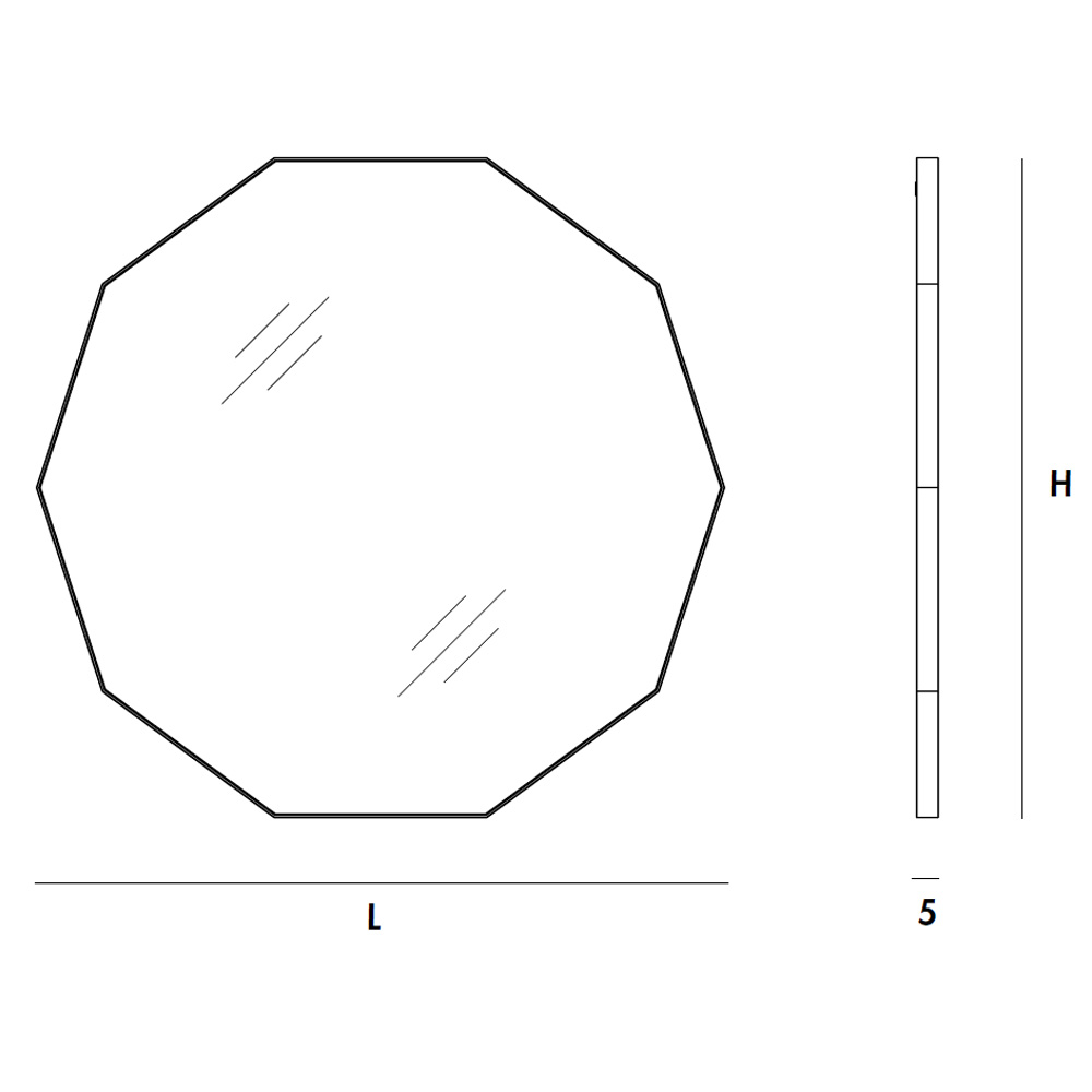 El moderno espejo Visual decagonal de Sovet Italia crea reflejos originales en el ambiente gracias a su original forma y a las diferentes tonalidades del espejo. Con sus diferentes dimensiones se pueden crear composiciones y amueblar los espacios privados y públicos con una refinada sencillez.