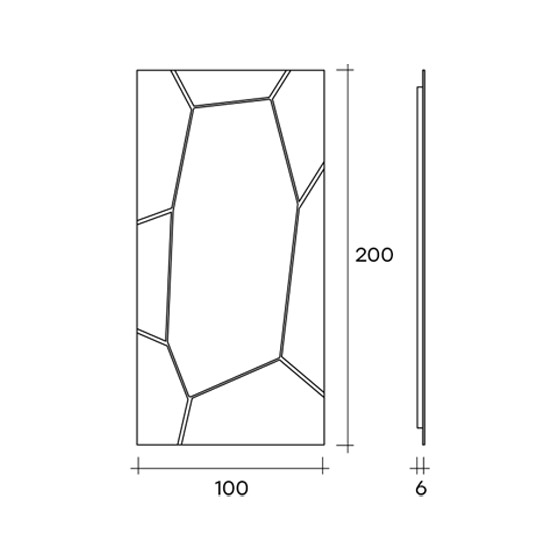 Espejo de pie o de pared con marco de vidrio de 6 mm, fundido a gran fuego y retroplateado, que incorpora texturas exclusivas obtenidas mediante una decoración artesanal realizada a mano. El espejo plano, de 5 mm, se sostiene sobre una estructura trasera de metal barnizado que garantiza resistencia y durabilidad. Su diseño versátil permite la instalación tanto en posición horizontal como vertical, adaptándose a diferentes espacios y estilos.