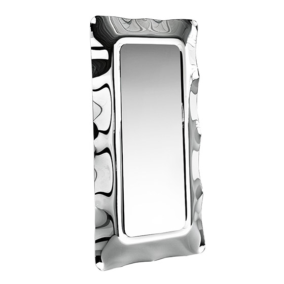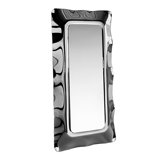 El espejo Dorian de Fiam Italia cuenta con un marco de vidrio fundido de 6 mm retro plateado y espejo plano de 5 mm, que se complementan con un bastidor trasero de metal barnizado, el cual le da la versatilidad de poder ser utilizado como un espejo de pared o de pie, y colgarlo en horizontal o vertical.