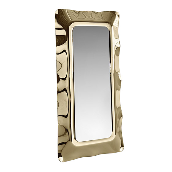 Espejo de pared o pie con marco de vidrio fundido. Dimensiones: 105x10x202h cm.