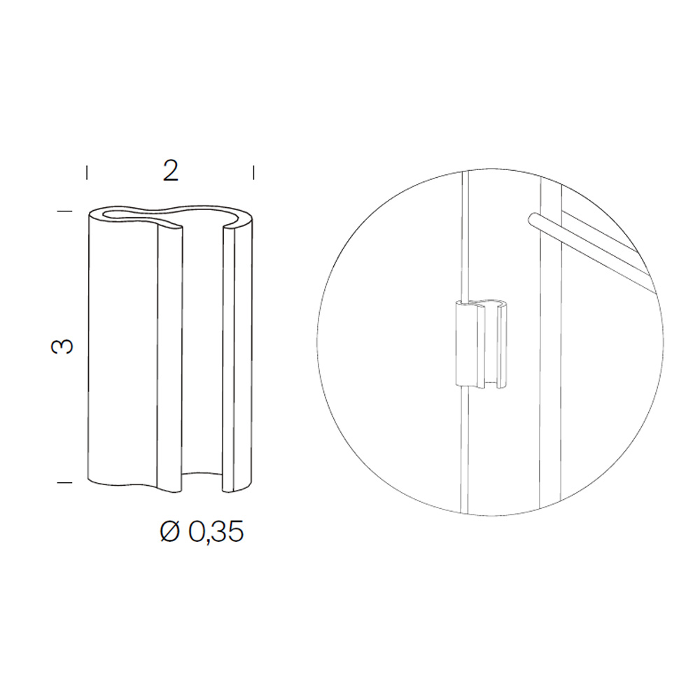 Clip de poliamida para sujetar un cable en el soporte lateral, complemento para la estantería modular Tria de Mobles 114.