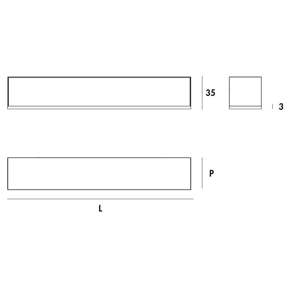 Estante de pared con estructura de chapa de madera. Dimensiones: 200x35x35h cm.