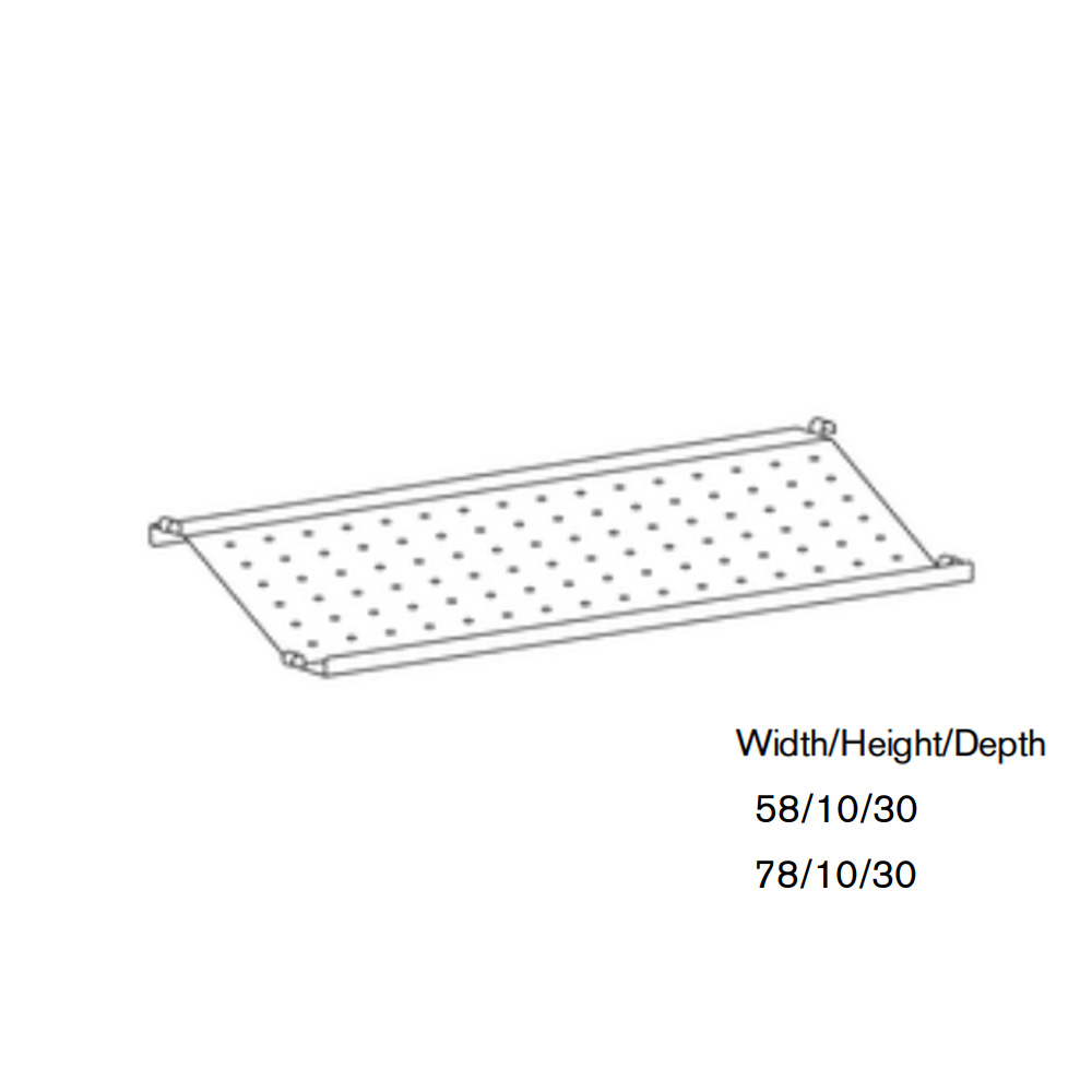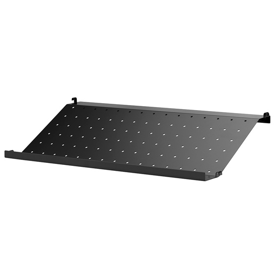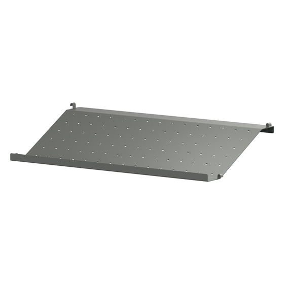 Los estantes para zapatos están disponibles en dos tamaños, 58 y 78 cm de ancho, junto con una profundidad de 30 cm. Se ajustan a los paneles de rejilla del sistema String® si la profundidad de los paneles es de 30 cm.