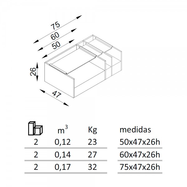 Mesitas de noche con cajón y tres anchos distintos con un estante superior extraíble de chapa metálica pintada al epoxi.