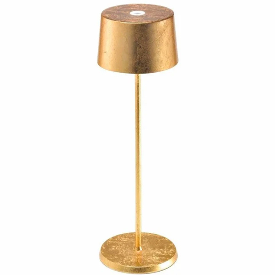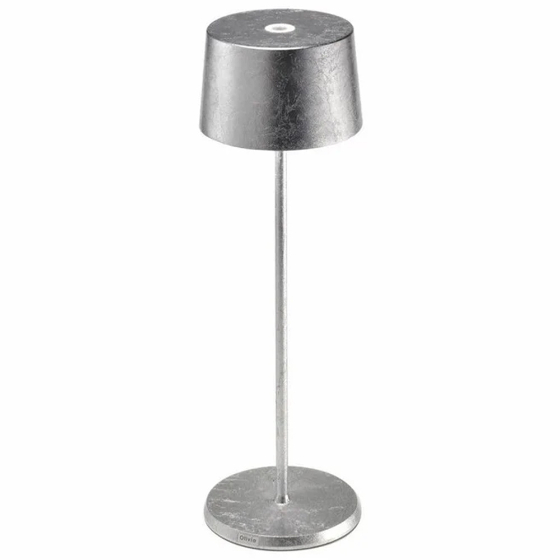 La lámpara sobremesa Olivia de Zafferano es portátil y funciona con batería recargable. Incorpora control táctil en la parte superior para encender, regular la intensidad de la luz y seleccionar la temperatura de color entre 2700K y 3000K. También cuenta con función de memoria, que conserva el nivel de luz seleccionado para que se mantenga al volver a encenderla.
