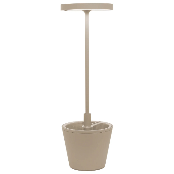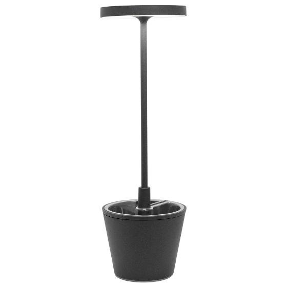 Poldina Reverso es una lámpara de mesa portátil y recargable con batería, que incorpora además un compartimento multiusos. En la parte inferior de la cabeza, incluye un control táctil que permite encender la lámpara, regular la intensidad de la luz y seleccionar la temperatura de color entre 2200 K, 2700 K y 3000 K.