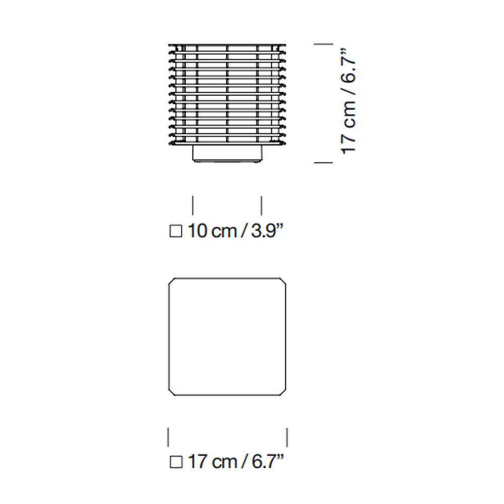 Esta lámpara de exterior crea un diálogo entre la arquitectura y la naturaleza, integrándose de forma natural en el paisaje. Su estructura racional y refinada no encierra, sino que filtra la luz a través de sus lamas dispuestas en forma cúbica.