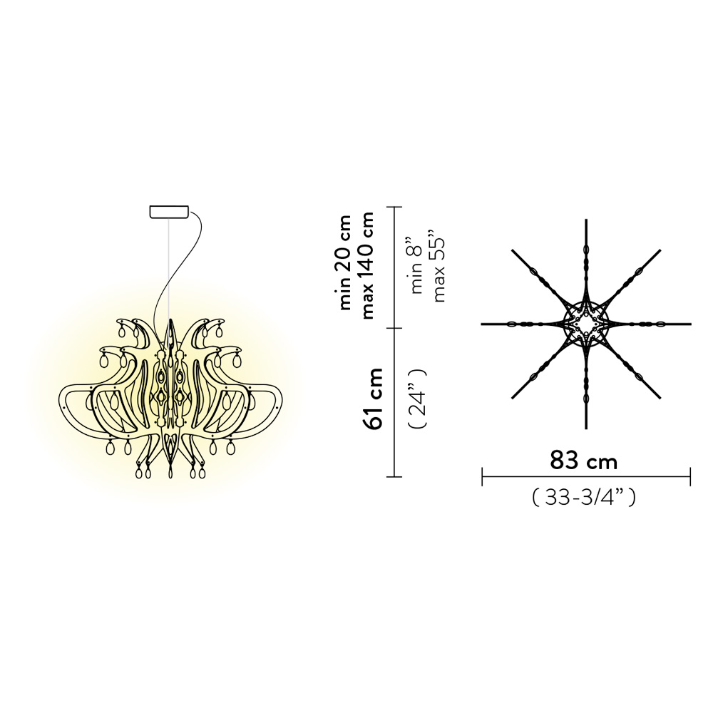 Lámpara suspendida con 56 cristales Swarovski. Dimensiones: Ø83x201h cm.