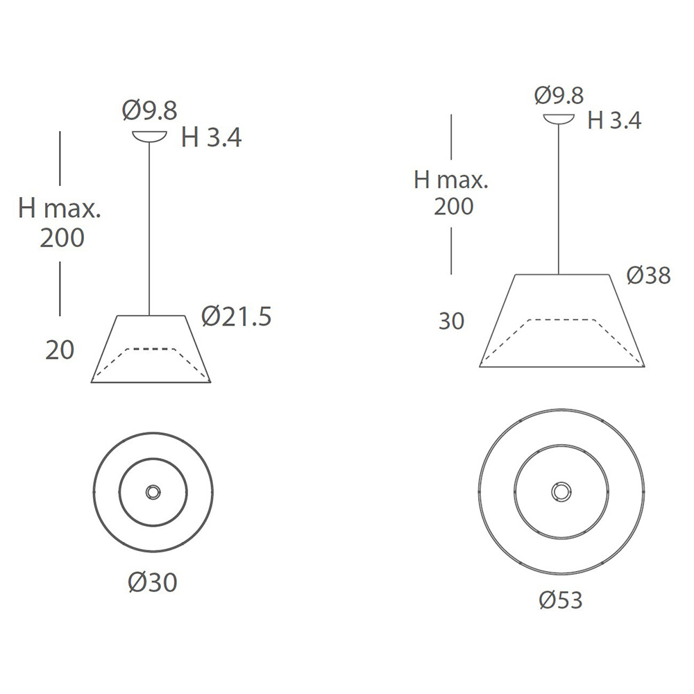 Lámpara de suspensión con pantalla de doble cono hecha con cuerda trenzada a mano a partir de botellas de plástico recicladas. Su estructura pone el foco en el trabajo artesanal y el uso de materiales sostenibles. Disponible en varios colores.