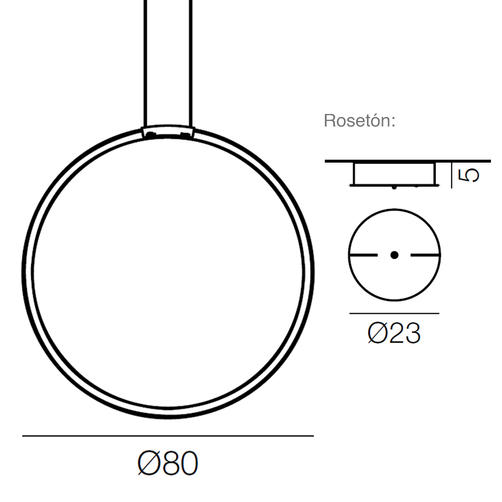 Lámpara de suspensión con aro en vertical. Dimensiones: Ø80x3h cm.