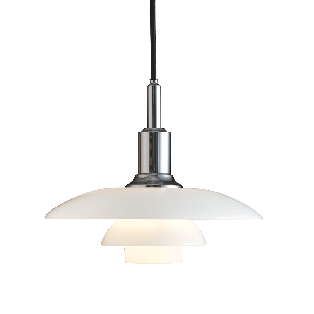 Poul Henningsen la diseñó basándose en su célebre sistema de tres pantallas, creado en 1925 para dar forma a una excepcional iluminación sin deslumbramiento.