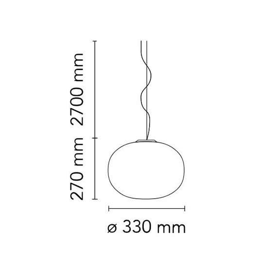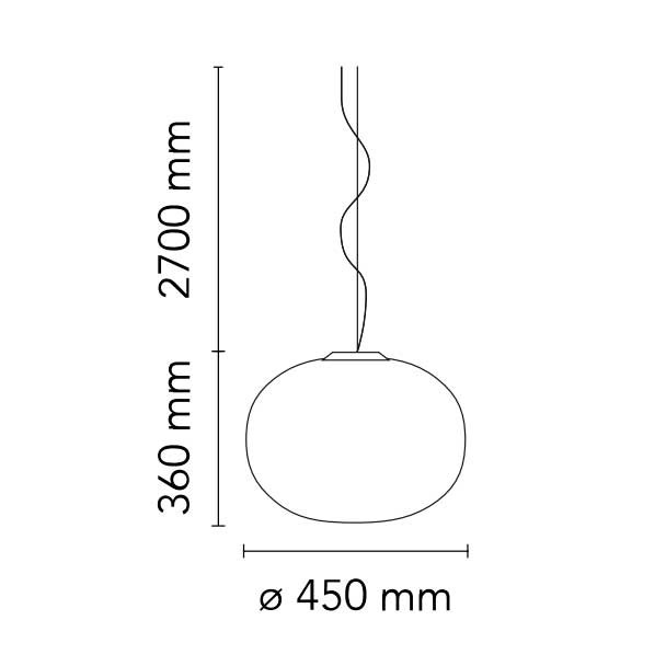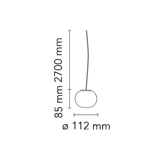 Lámpara de suspensión de luz difusa. Difusor en cristal soplado, tratado exteriormente al ácido. Soporte del difusor en policarbonato transparente estampado por inyección.