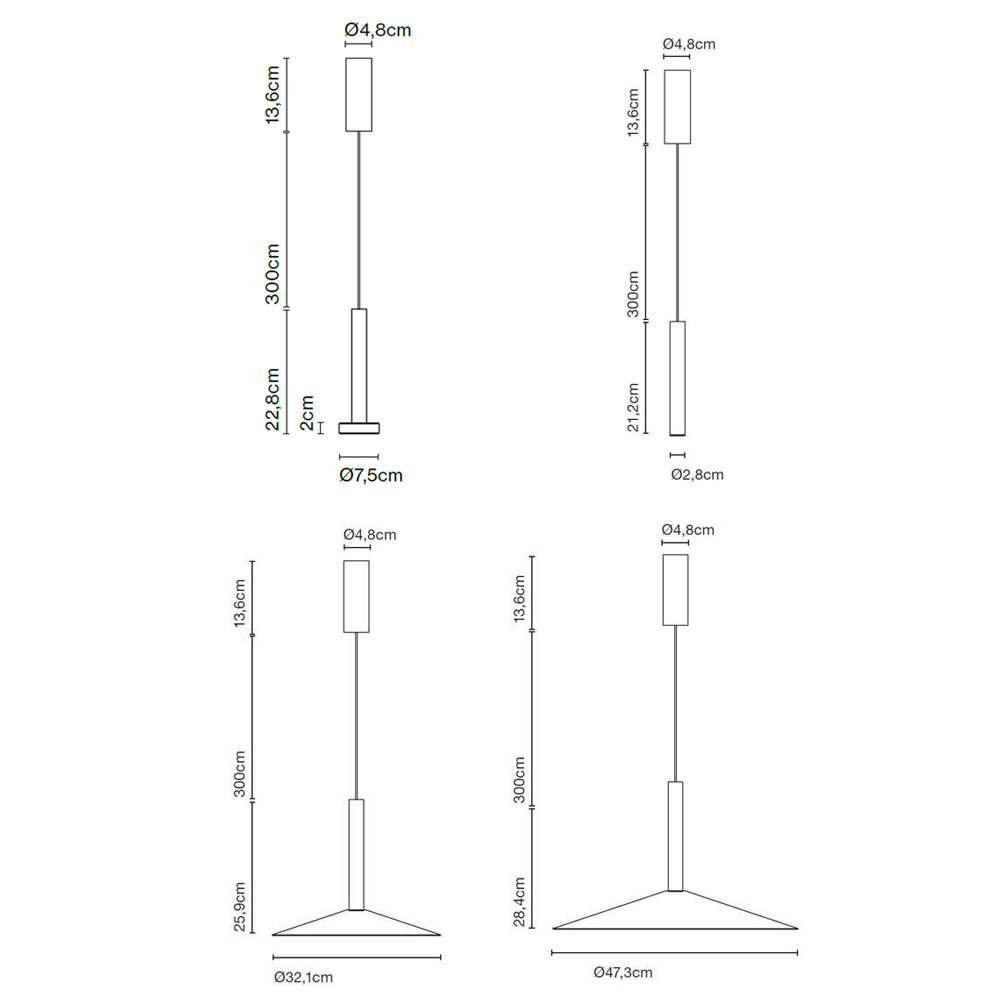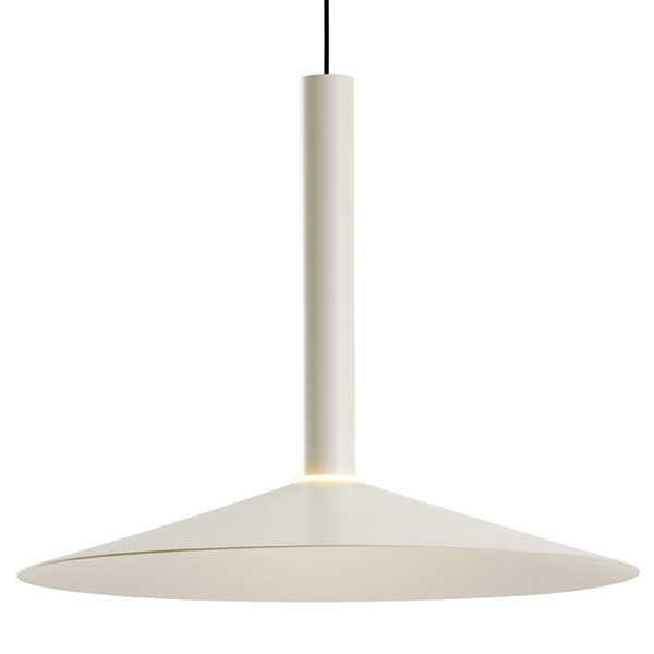 A este cilindro se le pueden añadir varias pantallas cónicas, dsiponible en varios tamaños. Pero lo más ingenioso es que cada una de estas luces puede tener un simple contrapeso que se puede mover colgándolas entre dos puntos.