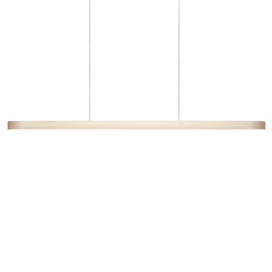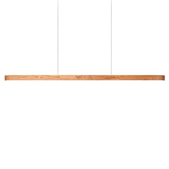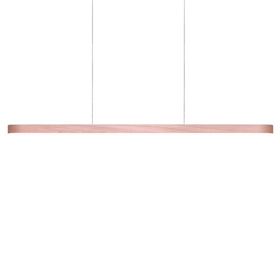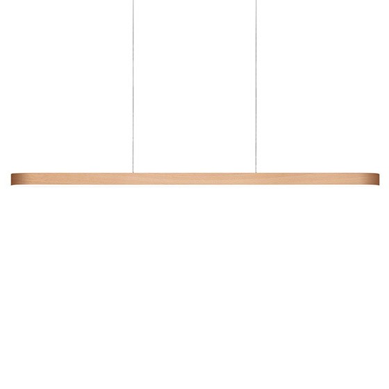 La chapa de madera, el LED regulable y el difusor que filtra la luz de I-Line brindan luz tanto directa como ambiental. En I-Line, Burkhard Dämmer ha creado una lámpara simple. simétrica y serena.