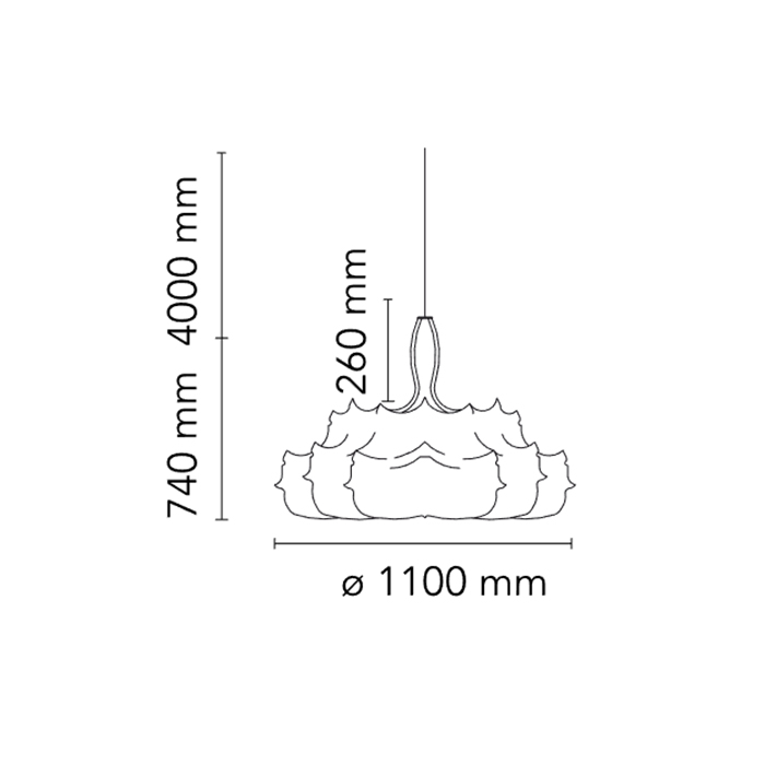Lámpara colgante de luz difusa en cocoon y acero. Dimensiones: Ø110x74h cm.