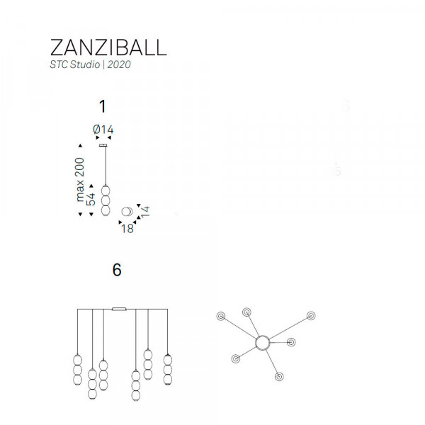 La lámpara colgante Zanziball de Cattelan Italia está elaborada siguiendo las técnicas de procesamiento del vidrio heredadas de la fabricación italiana. Su diseño cuenta con tres esferas hechas a partir de una única pasta vítrea. Cada lámpara Zanziball es una pieza de diseño única y exclusiva, gracias a los detalles irregulares del cristal blanco mate, combinados con los elementos de latón espalutado en ambos extremos. Esta moderna lámpara permite utilizarla individualmente o en una composición de 6 pantallas.