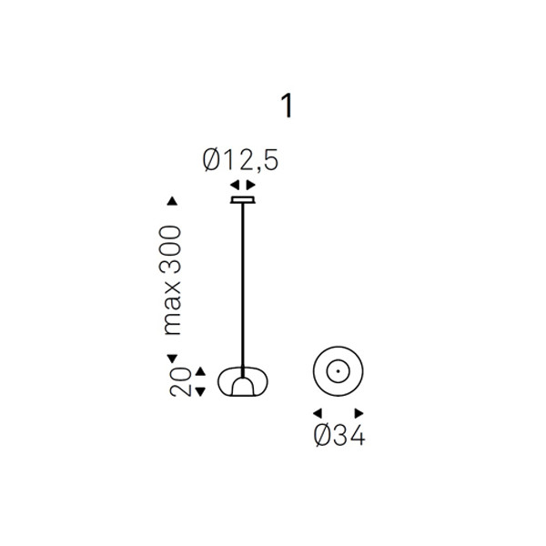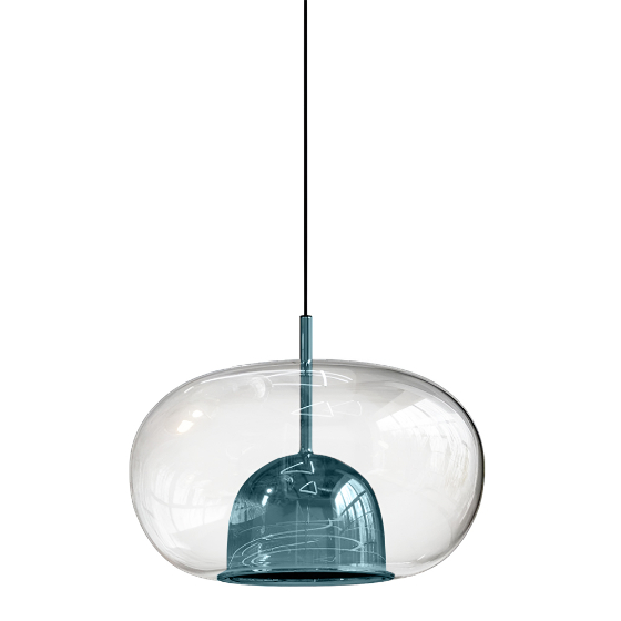 Lámpara colgante con pantalla y esfera en vidrio borosilicado. Diseño de O. Favaretto.