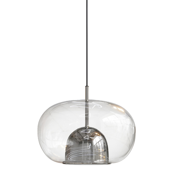 La lámpara colgante Coimbra de Cattelan Italia está formada por una pantalla transparente con forma de esfera achatada y una campaba interior hecha en vidrio borosilicatado barnizada. Esta moderna lámpara de diseño, se destaca por sus suaves curvas combinadas con acabados complementarios en tonos transparentes y reflectantes, que contribuye a decorar su habitación con armonía y ligereza, incluso cuando la luz está apagada. La lámpara Coimbra es ideal para iluminar el espacio del comedor, su diseño permite utlizarla individualmente así como en una composición asimétrica en múltiples alturas, compuesta por 6 pantallas que desciende suavemente ya sea sobre una mesa auxiliar o en un cómodo rincón de lectura.