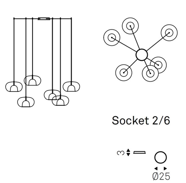 La campana interior está disponible en vidrio borosilicatado barnizada bronce, gris oscuro o azul. Soporte de techo en acero cromo negro (06).