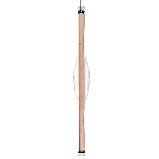 Lámpara suspensión vertical con pantalla de madera. Dimensiones: 14x6x120h cm.