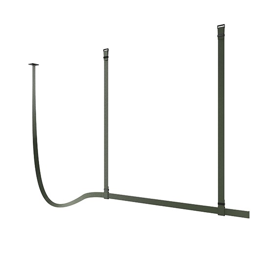 Belt es pura flexibilidad, una línea sinuosa que crea equilibrio entre la suavidad de la tela y la rigidez del aluminio. La parte blanda está representada por la conexión a la red eléctrica, mientras que las partes rígidas corresponden a la fuente luminosa, unas largas líneas de luz.