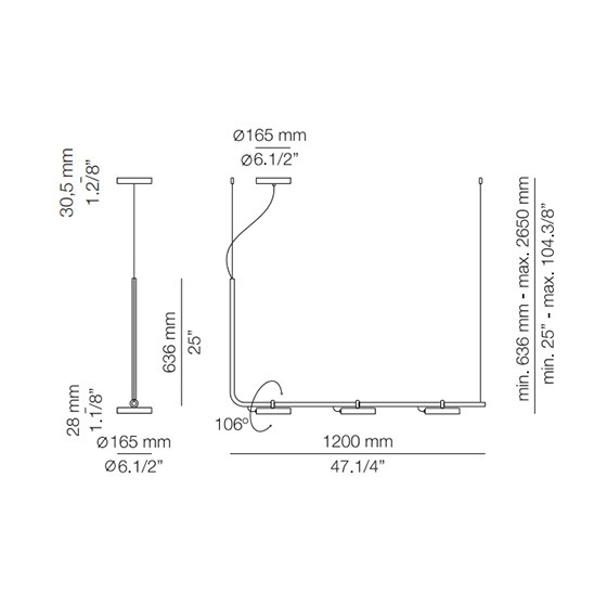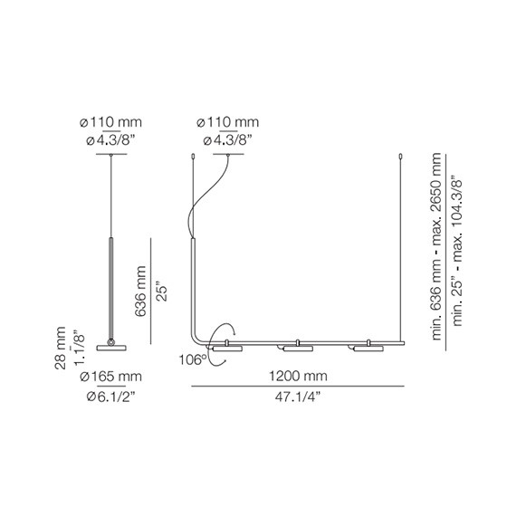 La lámpara de suspensión Aro es metálica con forma circular y está disponible en acabado negro. Tiene cabezales ajustables y difusores en acrílicos, los cabezales giran 106º.