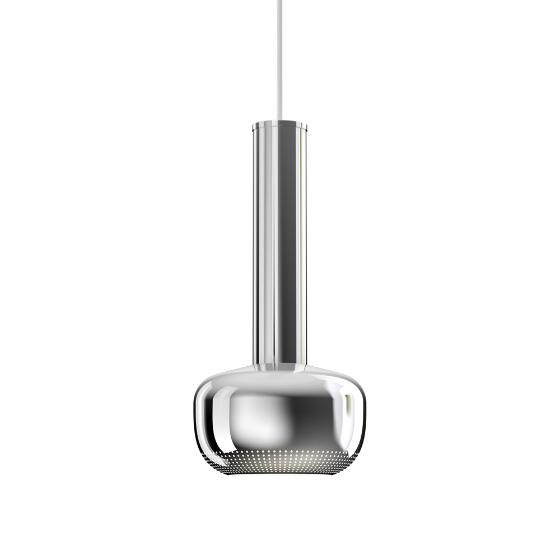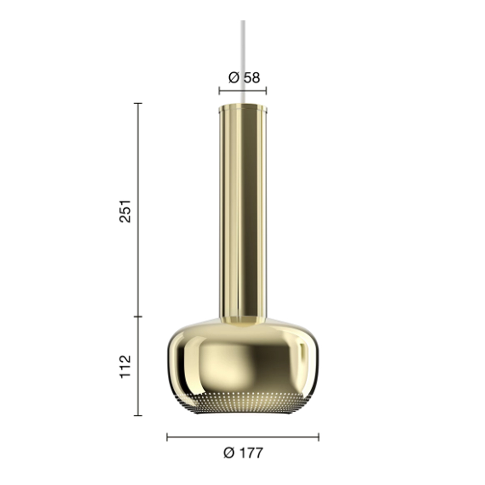 Lámpara suspensión en latón pulido o cromo. Dimensiones: Ø 17,7x36,3h cm