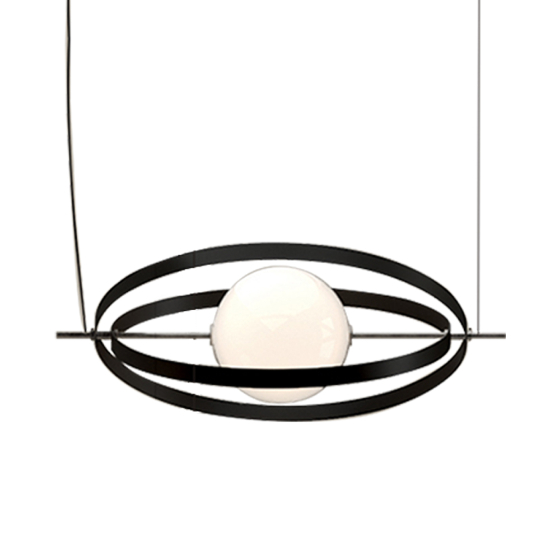 Lámpara colgante con esfera de vidrio borosilicato y estructura en acero. Dimensiones: 73x60x22h cm.