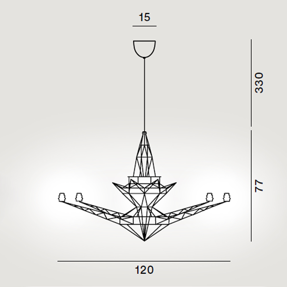 La lámpara de suspensión Lightweight de Foscarini está formada por un ligero montaje geométrico en forma de estrella y fabricado en metal anodizado. Su diseño retoma el concepto de la clásica lámpara de techo con brazos, y la despoja de todos sus decoraciones conservando solo el esqueleto.