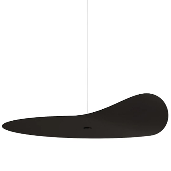 Flow es una lámpara de suspensión con un difusor opalino, hecho de dos capas de vidrio soplado, y estructura metálica recubierta en pintura. Inspirada en la imagen de hojas flotando fuera de una ventana, el diseño del disco metálico imita esta forma natural. FloW permite combinar sus elementos compositivos para crear instalaciones impresionantes, jugando con sombras y luces para capturar la danza de la naturaleza en un día ventoso.