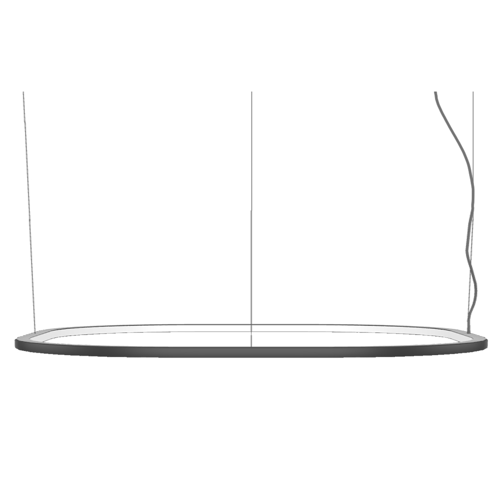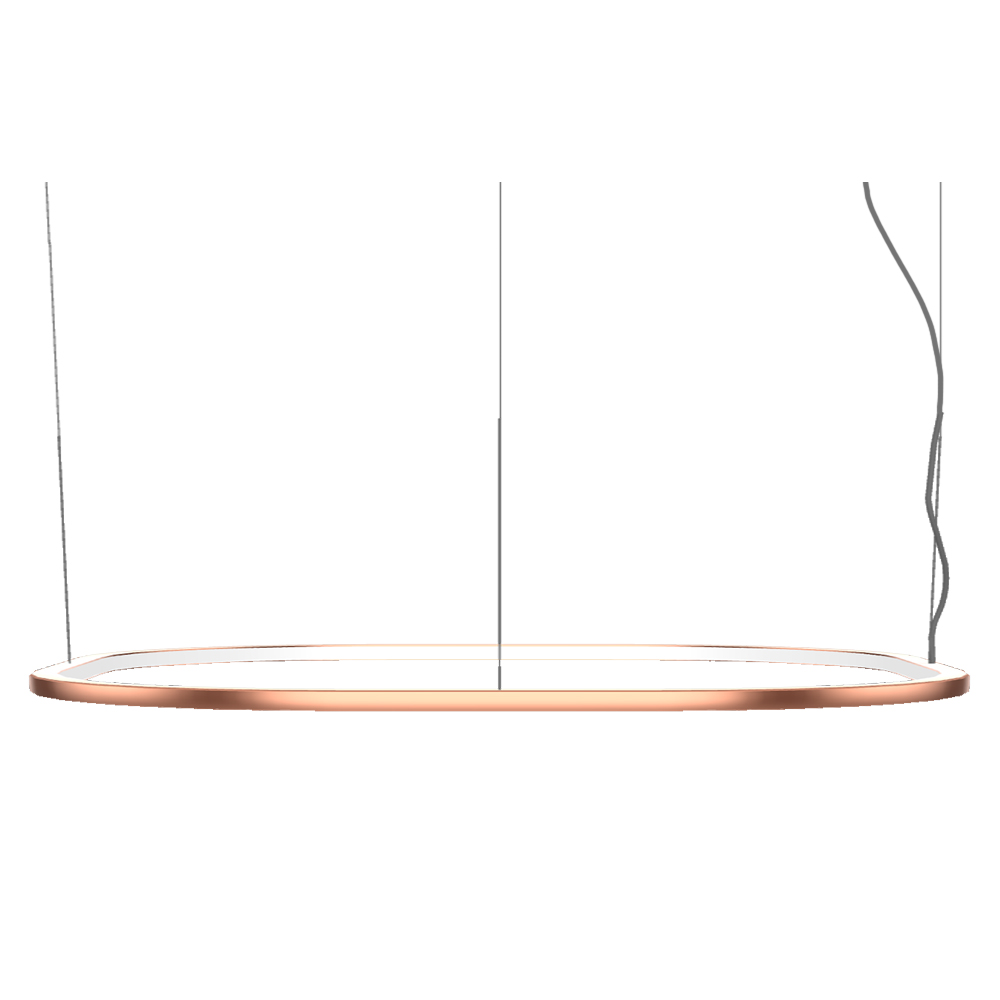 Loop Rectangular es una lámpara de suspensión a luz difusa, compuesta por perfiles lineales y curvos en aluminio pintado. Su difusor es de policarbonato opal blanco. La fuente de luz es un LED integrado. Los alimentadores electrónicos son dimmerables, y están integrados en el rosetón para fijarse al techo o al falso techo.