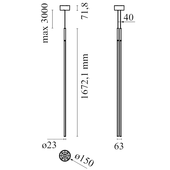 Lámpara de suspensión formada por dos barras verticales. Dimensiones: Ø23x167,21h cm.