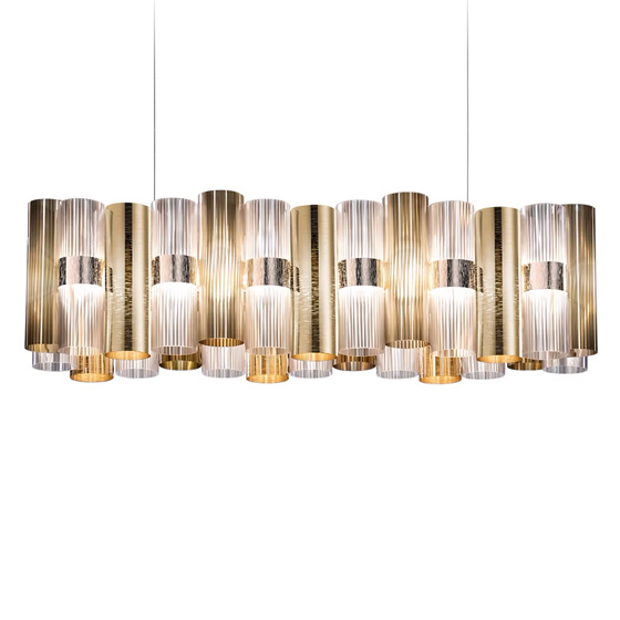 La lámpara de suspensión La Lollo Linear hace honor y está inspirada en los años 50, evocando las divas, asi como las luces de esa emblemática época.