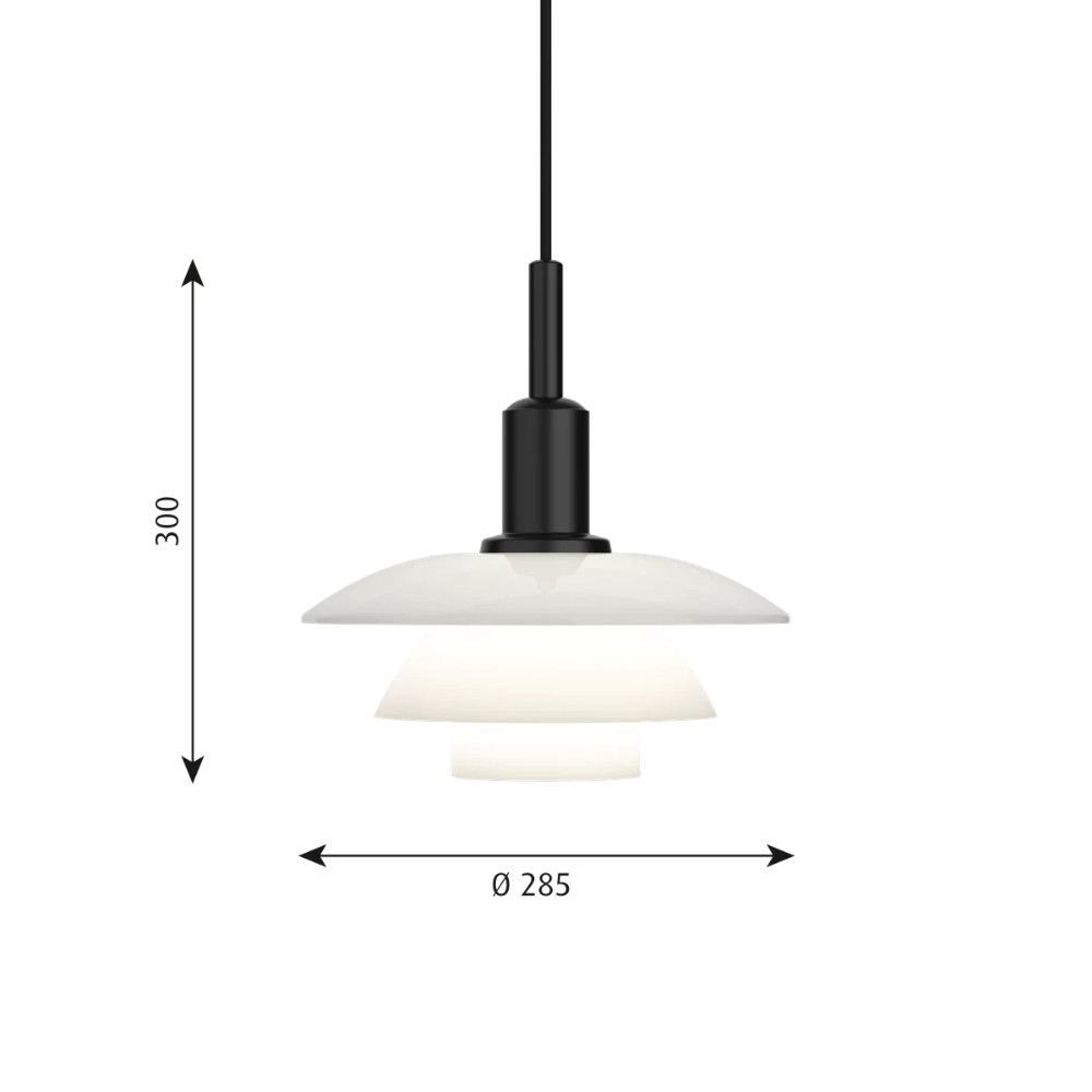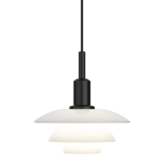 La lámpara PH 3/3 Suspendida de Louis Poulsen ofrece iluminación uniforme y sin deslumbramiento gracias a su sistema de tres pantallas diseñado por Poul Henningsen. Disponible en vidrio opalino blanco soplado a mano o metal negro soft touch con interior blanco, proporciona luz directa hacia abajo y un resplandor ambiental. Incluye un difusor de vidrio esmerilado para una distribución más suave.